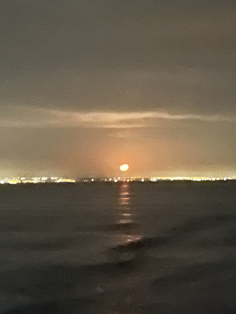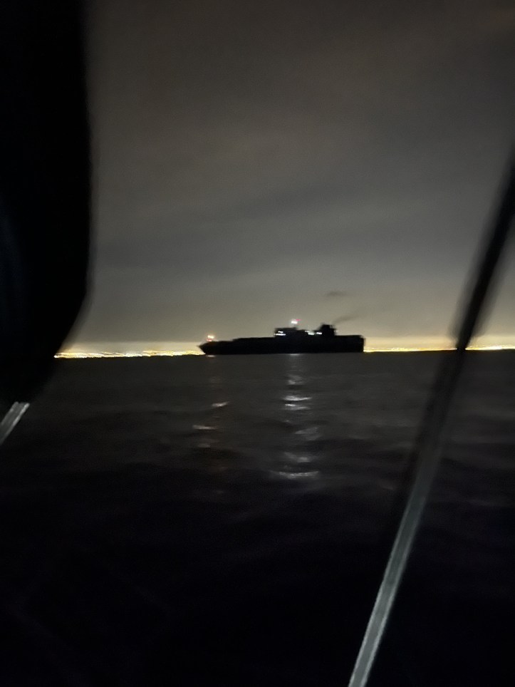 Nachts treffen wir immer wieder auf die Großschifffahrt. Während meiner Nachtwache fahren wir an der Industriestadt Brindisi vorbei. Hell erleuchtet scheint die Nacht dort zum Tag zu werden. Schon seit geraumer Zeit verfolgt uns ein Schiff., am AIS und am Radar deutlich erkennbar. Bei Brindisi hat es uns eingeholt. Ein schwarzer Koloss gleitet an unserer Steuerbordseite vorbei und verdunkelt für einen Moment die Lichter der Großstadt. Sehr beeindruckend !