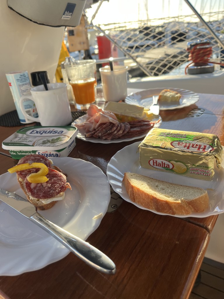 Schließlich entdecken wir eine Gelateria, in der wir uns mit Kalorienbomben für unser nächstes, rituelles Event namens „Kaffee und Kuchen“ eindecken. Zurück an Bord begehen wir dieses geliebte Ritual und danach passiert nicht mehr viel.