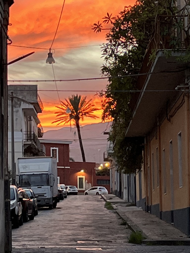 Es ist unglaublich, was man auf so einer kleine Fläche alles unterbringen kann. Von der Zahnbürste bis zur Pasta, von der Salami bis zum Wischmopp, alles findet Platz . Die Gänge dazwischen sind , wie soll ich das sagen, eher Pfade. Dazwischen wurlen die Sizilianer und Sizilianerinnen mit ihren Wägelchen hin und her. Manu hat sich mit der Geschmeidigkeit, die sie ihr Eigen nennt, perfekt in den Verkehr eingefügt und tut es ihnen gleich.
