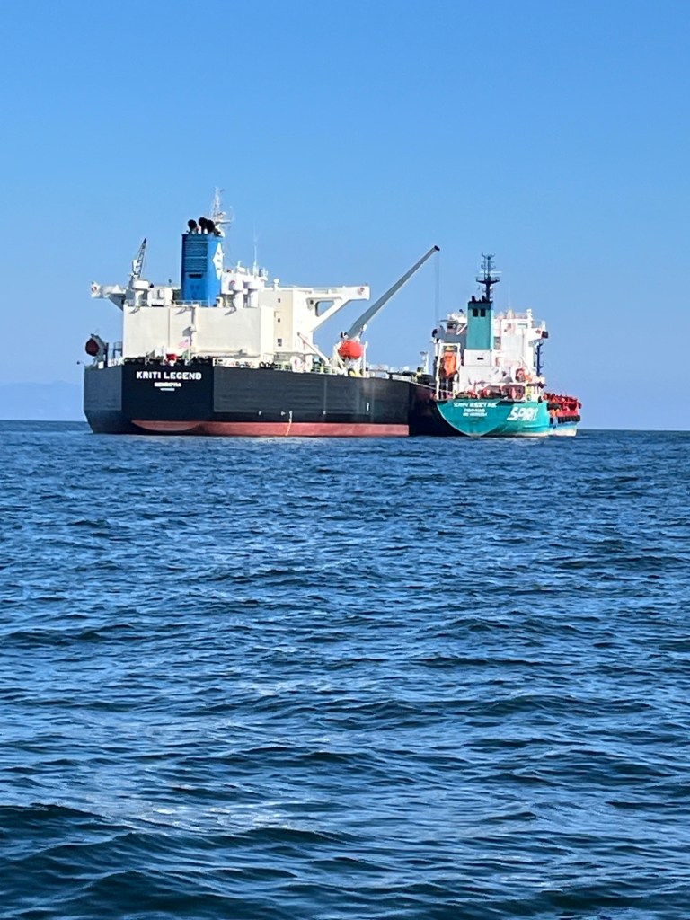 Für diese Überfahrt war klar, dass wir nicht die gesamte Strecke unter Maschine fahren konnten, dafür reichte unser Tank nicht und wir wollten zu diesem Zeitpunkt noch keine Zusatzkanister transportieren. Daher mussten wir, nachdem wir die Bucht von Cagliari, die wirklich groß ist, Kurs SSO (SüdSüdost) anlegen. Der Weg durch die Bucht führte uns an einer Raffinerie und anderen Industrieanlagen vorbei und auch durch den dazugehörenden Ankerplatz für Tanker und Frachter, die dort auf Reede liegen.