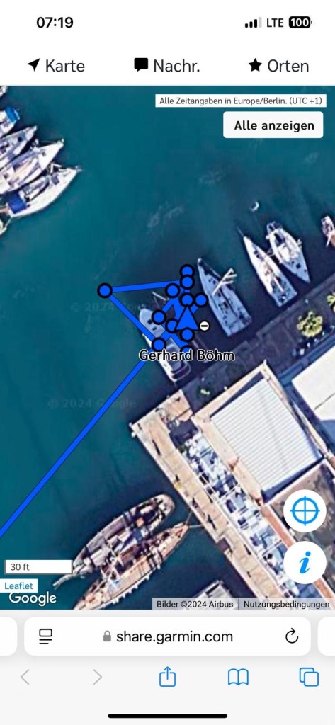 Damit wir uns so positionieren können, dass es auch nach Etwas aussieht, denn momentan hängen wir irgendwie völlig schief da, hüpft Manuela kurzerhand auf die Pier und bedient die Leinen, während ich die Inspiration ausrichte. Dieses Manöver hat meine Freund Michael heute dazu veranlasst, ich zitiere: „@Gerhard: dein Einparkmanöver hat noch Potential :-)“ zu posten. Recht hat er.