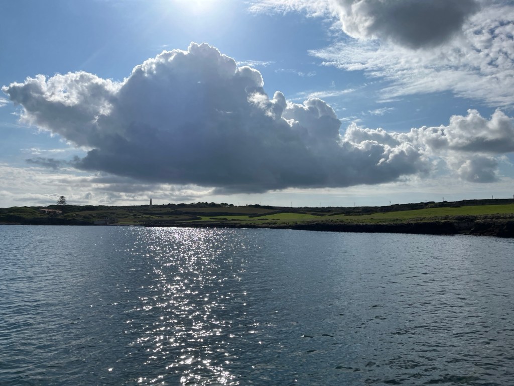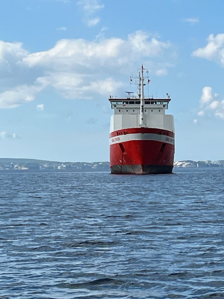 Während der ganzen Überfahrt haben wir wenig anderen Verkehr, die Zeiten, wo wir Tanker und Kreuzfahrer umschiffen mussten, scheinen vorerst vorbei zu sein. Einzig, eine französische Segelyacht, die „Deiz Ebrel II“ begleitet uns wie ein Schatten. In einer Entfernung von 3 nautischen Meilen ist sie mit ähnlicher Geschwindigkeit und ähnlichem Kurs unterwegs. Wir sehen das Schiff auf dem AIS, aber haben keinen visuellen Kontakt. Spannend wird es, als auch der AIS Kontakt verschwindet. Wir überprüfen unser AIS System und stellen fest, dass bei uns alles in Ordnung ist. Zehn Minuten später haben wir wieder sein AIS Signal, so geht es eine ganze Weile dahin. Vielleicht hat es mit den Gewittern und Regenschauern zu tun.