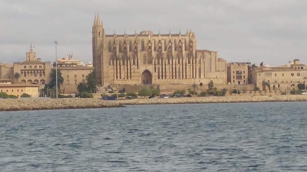 Nach einer dreiviertel Stunde Wartezeit informierte mich der Tankwart höflichst, dass das Heute nichts mehr werden wird, wir es aber auf der anderen Seite des Hafens probieren könnten. Ein Blick hinüber offenbarte, dass diese Tankstelle eher für Superyachten gedacht war und auf uns nicht sehr einladend wirkte. Wir legten ab und richteten den Bug gen Hafenausfahrt, der Tank war ja eh noch halbvoll. Eine kurzer Abstecher zur Kathedrale war noch drin. Zusammen mit den Bildern von Manu´s Einkaufstour gibt es also doch noch ein paar Eindrücke von Palma.