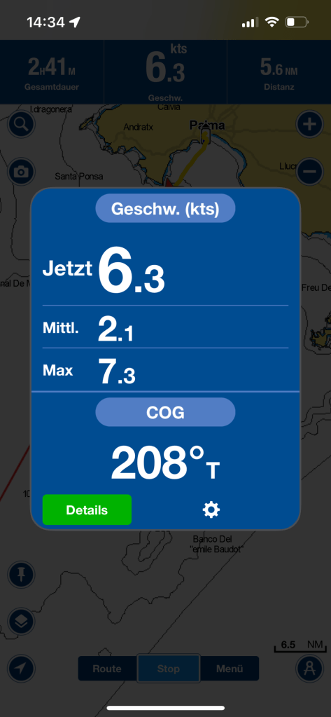 Jetzt wo ich hier sitze und schreibe, macht der Wind das, was angesagt war. Er nimmt an Stärke zu und ändert etwas die Richtung. Deswegen ist hier Schluss mit dem heutigen Artikel, denn wir müssen an Deck und die Segel etwas verkleinern.