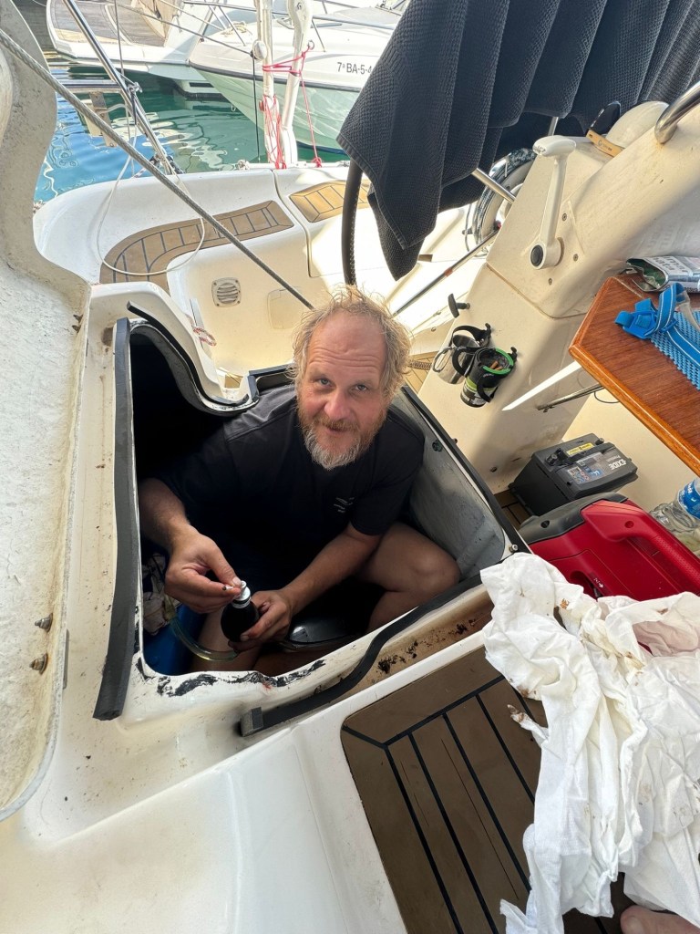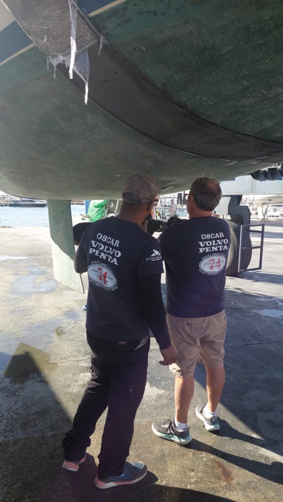 Währenddessen wechselte das Team von Oscar das Öl im Saildrive ( spezieller Antrieb bei Segelbooten), baute die Schraube ab, wartete Selbige und machte noch Vieles mehr. Dies war die Magie von „Oscar Marine Engines“, denn Oscar hatte sich offensichtlich entschlossen, uns nur auf große Fahrt gehen zu lassen, wenn er sich sicher sein konnte , dass wirklich alles in Ordnung sei. „Tippi Toppi“ würde er sagen.