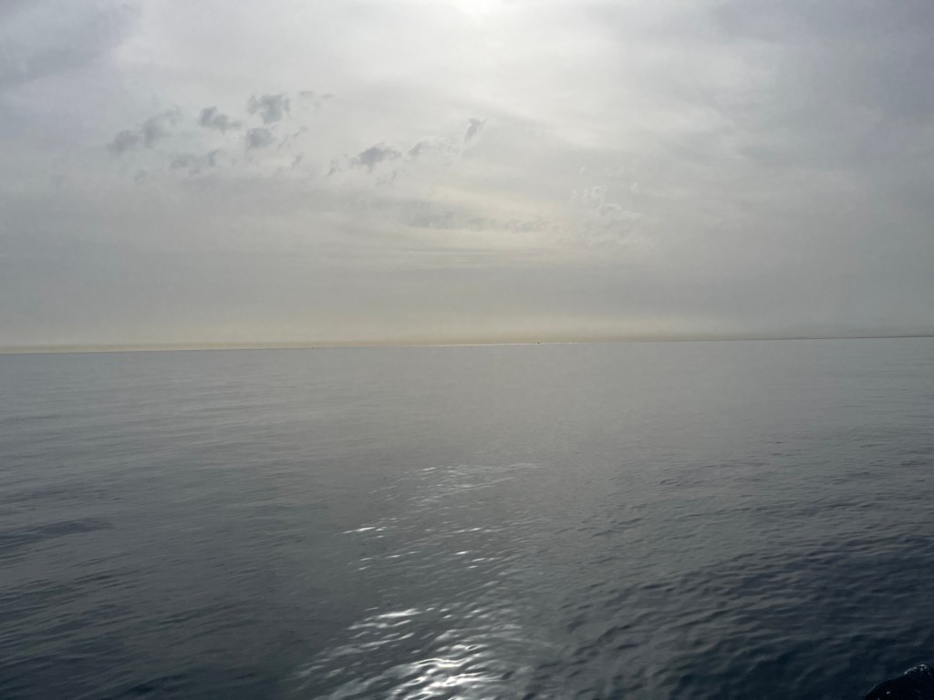 Unser Ziel war die Marina des Ortes La Linea, hinter dem britischen Bereich von Gibraltar gelegen. Es war etwas diesig, doch die Sonne hatte sich schon ihren Weg gebahnt und verlieh der Straße von Gibraltar einen goldenen Schimmer. Kein Lüftchen bewegte das Meer, wir schoben uns unter Maschine Kabellänge um Kabellänge der Halbinsel entgegen. In der Ferne waren schon die großen Jungs schemenhaft zu erkennen, eingehüllt in einen gelblichen Dunst, wohl das Produkt unzähliger Schornsteine, die tagaus tagein die Straße passieren.