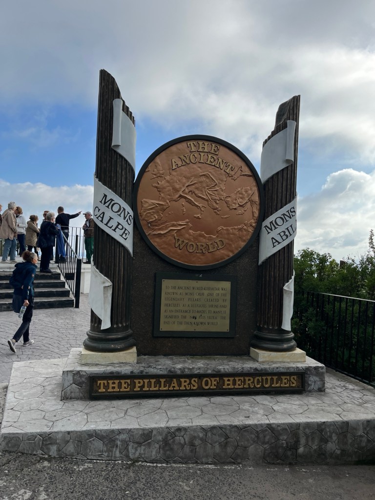 Was sind nun die Säulen des Herkules? An der ersten Station unserer „The Rock“ Tour hielten wir an einem Denkmal. Dies beschrieb die Säulen des Herkules. Das sind einerseits der Felsen von Gibraltar und andererseits der Berg „Dschebel Musa“, in Marokko gelegen. Zwischen diesen beiden Bergen befindet sich, ebenda, die Straße von Gibraltar. Auf der Inschrift des Monumentes findet sich der Passus „Non plus Ultra“, was so viel wie „nicht mehr weiter“ bedeutet. Damit sollte das Ende der Welt markiert werden. Ein Irrtum, wie sich später herausstellen sollte.