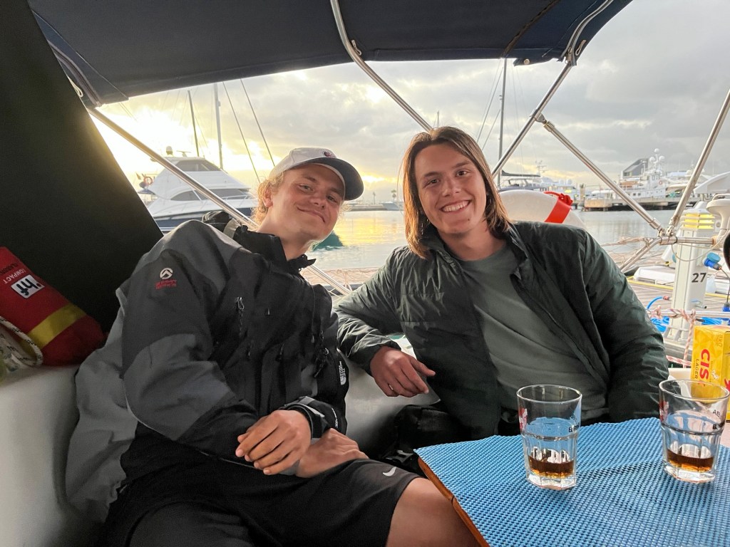 Als wir zu unserer Pier zurückkamen, saßen dort die zwei Jungs vom Vortag. Wir luden sie zu uns aufs Boot auf einen Sundowner ein. Begeistert folgten sie der Einladung. Bei einer halben Flasche 15 Jahre altem Rum, die Manu aus ihrer geheimen Reserve hervorholte, lernten wir uns näher kennen. Die Beiden waren Marcel aus der Steiermark und Stefan aus Stuttgart. Beide hatten sich hier in La Linea auf der Suche nach einem Boot, welches sie nach Südamerika mitnehmen sollte, kennengelernt. Mittlerweile waren sie schon einige Wochen hier. Sie campierten mit Gleichgesinnten in einem kleine Wäldchen unweit von der Marina, in die sie immer durch ein Loch im Zaun gelangten, um die Boote abzupassen.