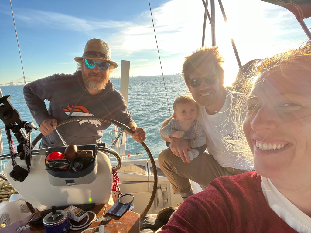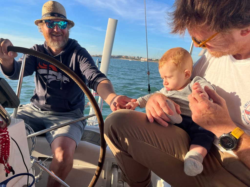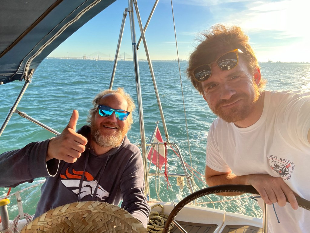 Wir hatten uns schon viele Jahre, ich denk sieben oder acht, nicht mehr getroffen, haben unsere Freundschaft aber immer wieder über Whattsapp, etc. gepflegt. Umso mehr freute es mich, Gonzalo persönlich wieder zu sehen und gemeinsam Zeit zu verbringen. Im Vorfeld hatten wir schon Pläne gemacht, was wir Alles tun würden, zum Beispiel wieder miteinander in die Luft zu steigen. Doch die Wirren des Alltags haben das verhindert. Dennoch war es wunderbar, gemeinsam am Strand zu sein, zu speisen, zu reden und vorallem viel zu lachen. Tags darauf, fuhren wir, vor Manuelas Rückkehr, noch gemeinsam mit der Inspiration in die Bucht von Cadiz hinaus. Es war gemütliches Nachmittagssegeln angesagt, natürlich waren Carmen und der kleine Oliver auch mit dabei, nur Kiwi blieb an Land, nicht weil er nicht an Bord durfte, denn die Inspiration ist an Hunde gewöhnt, sondern Kiwi machte klar, dass er weder Segler war, noch Seemannspfoten hatte.
