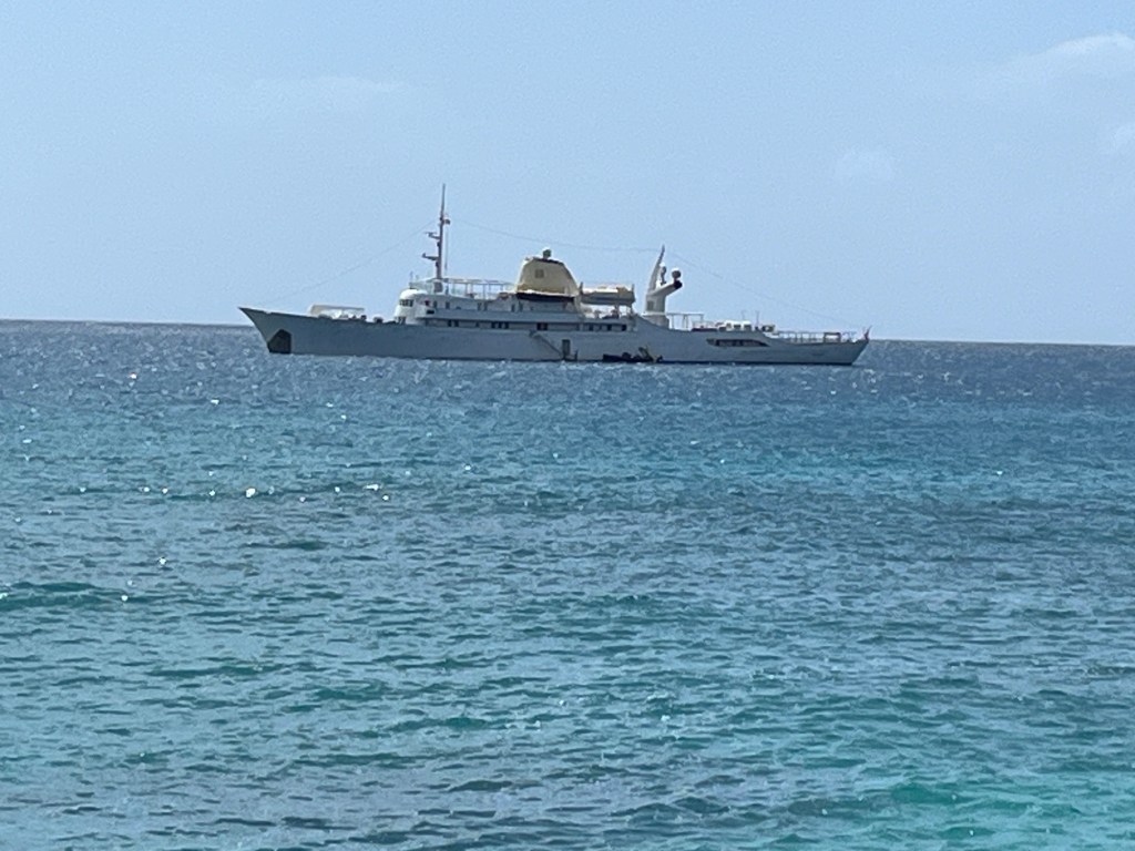 Mittlerweile hatte hinter uns, wir befanden uns nach wie vor in der Carlisle Bay vor Bridgetown, Barbados, eine große Motoryacht den Anker geworfen. Dem Baustil nach handelte es sich wohl um ein in die Jahre gekommenes Modell, was ihrer Schönheit jedoch keinen Abbruch tat. Man sah ihr das Alter an dem einen oder anderen Rostfleck schon von Weitem an und dennoch ging etwas schicksalhaftes von Ihr aus. Grund genug, ein wenig zu recherchieren.