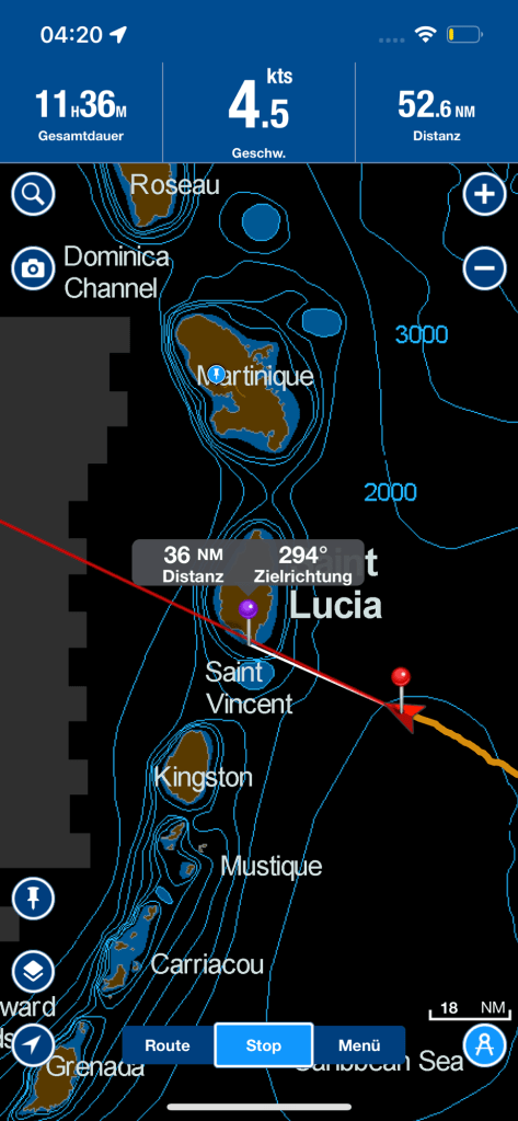 Wir holten die Genua aus ihrem Schlaf und segelten an der Chirstina O vorbei. Obwohl wir uns redlich bemühten konnten wir keinen Blick auf etwaige Prominenz erhaschen und so fuhren wir dem karibischen Meer entgegen. Kurs direkt St. Lucia. Wie sich herausstellen sollte, ist der direkte Weg beim Segeln nicht immer der Schnellste. Uli und Claudi, welche wegen kleinerer Reparaturen am Beiboot noch einige Stunden in der Carlisle Bay verbrachten, sollten St. Lucia vor uns erreichen, denn sie nutzten die Landabdeckung von Barbados aus und setzten erst dann Kurs St. Lucia.
