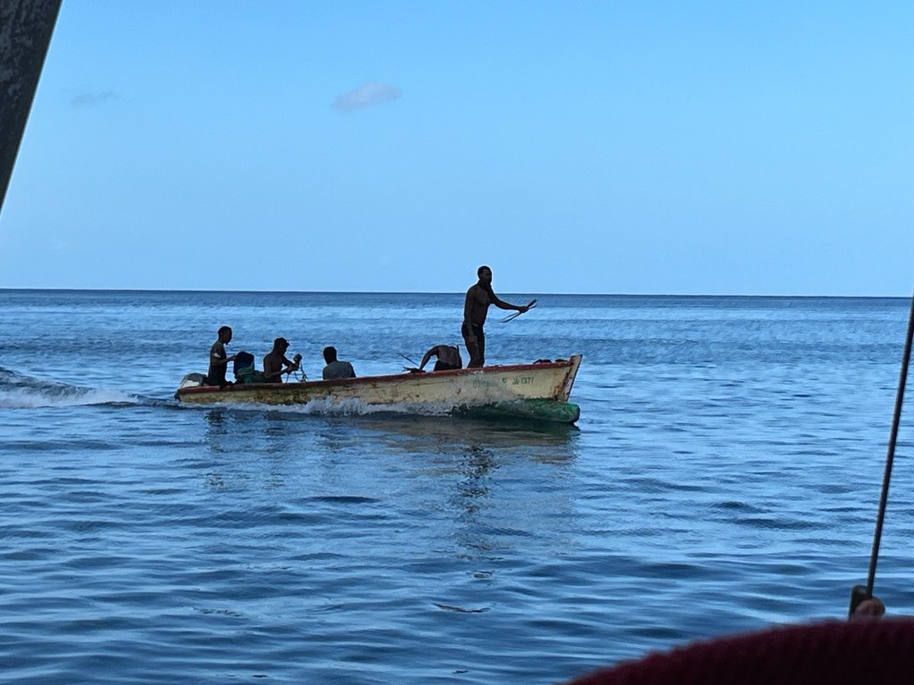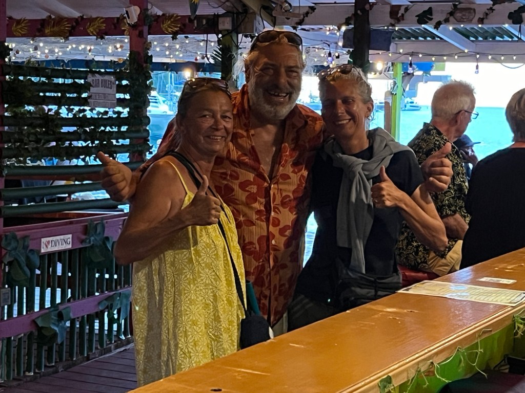 Es sollte sich herausstellen, dass sie uns beim Anlegen an der Boje behilflich sein sollten. Auf die Frage, was wir ihnen schuldig seien, winkten sie ab und meinten nur, wenn wir bei ihnen eine Inseltour buchen würden, wäre der Service gratis. Wir haben sie später fürstlich entlohnt, nachdem sie uns (Claudi und mich) zur Immigration gebracht haben.