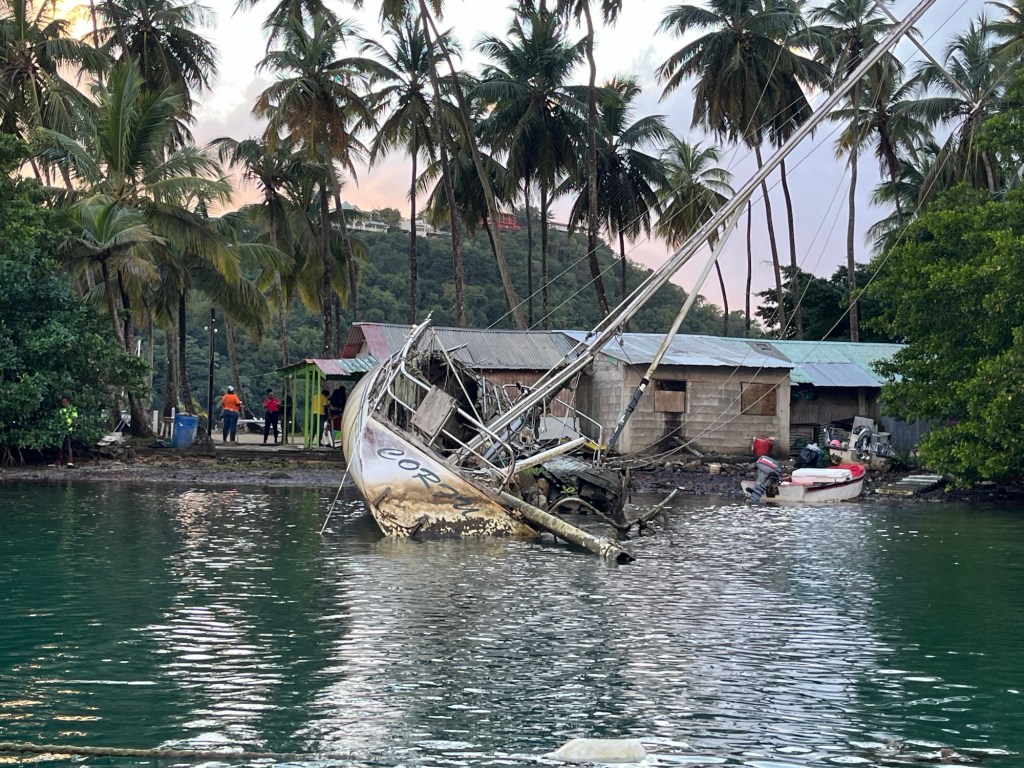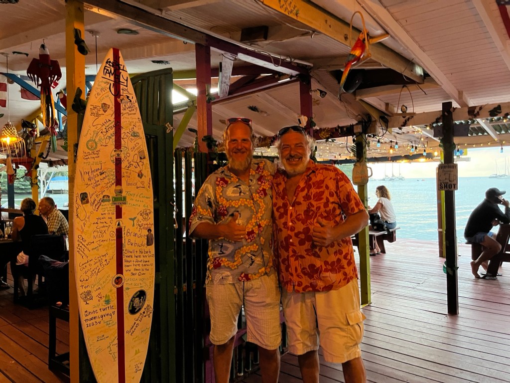 Als wir das Zoll/Gesundheitsbüro betreten hatten, war es kurz nach 15:00 Uhr, also noch rechtzeitig, denn um 16:00 Uhr wären die Ämter geschlossen gewesen. Bei den Behörden lief im Wesentlichen der selbe Prozess wie in Barbados ab. Papier um Papier wurde von uns händisch ausgefüllt, um fünf Meter weiter bei der nächsten Stelle das Selbe wieder zu tun. Dieses Prozedere sollte nur in den französischen Übersee Departements anders sein, einfacher, weil es bereits online vorausgefüllt werden konnte. Im Ausgleich dazu hat sich auf diesen Inseln die Buchung eines Marinaliegeplatzes als sehr komplex herausgestellt. Als wir Beide hier alles erledigt hatten, schritten wir zur Immigration, welche in der nebenan liegenden Polizeistation untergebracht war. Mittlerweile war es 16:00 Uhr geworden, was den Polizisten veranlasste, auf eben diesen Umstand hinzuweisen und das damit eine sogenannte „Overtime – Fee“, also eine Strafgebühr für zu spätes Eintreffen in der Höhe von 150 ostkaribischen Dollar, umgerechnet 50 Euro fällig wären. Wären wir am nächsten Morgen wiedergekommen, hätten wir uns diese Gebühr sparen können, doch hätten wir und die Crews das Land nicht betreten dürfen, also keine Option. Die sind hier wirklich kreativ mit den Sondergebühren. In Barbados mussten wir Anlegegebühr (im Kreuzfahrtterminal) bezahlen, obwohl unsere Schiffe weit entfernt vor Anker lagen. Was soll´s, Welcome to Paradise ist das Motto.