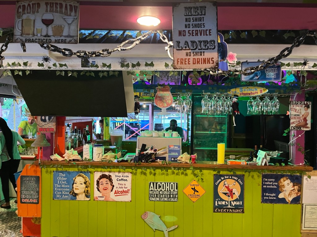 Auf der Rückfahrt klärte uns der Tourguide über den glücklichen Zufall auf, dass genau an dem Tag, an dem wir mit ihm unterwegs waren, sein Geburtstag war und er sich natürlich über ein, diesem Anlass entsprechend, üppiges Trinkgeld freuen würde. Auf die Frage, was er denn als angemessen ansehen würde, rief er einen Betrag aus, den ich gar nicht nennen möchte, doch Stand er in keiner Relation, vor Allem nicht zu seiner , wie sagt man, ausbaufähigen Tourbegleitung. Wir gaben ihm dann ein Trinkgeld, für das man sich nicht zu schämen braucht, auch wenn dieses nicht in den lichten Höhen seiner Vorstellung lag. Zurück in Soufriere Bay saßen wir noch mit anderen Seglern zusammen in einer Bar und ließen mehrere Biere unsere mittlerweile trockenen Kehlen hinunterlaufen. Manu freute sich über ein Hühnchen (auf dem Teller, versteht sich), von dem ich natürlich auch ein, zwei Bissen abbekam. Den Landgang nutzen wir noch für nötige Einkäufe, bevor wir auf unsere Schiffe zurückkehrten.