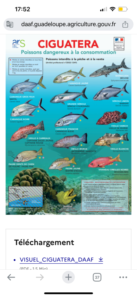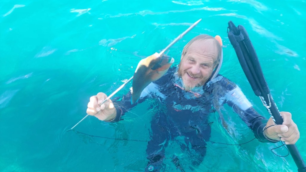 Anfangs fiel es mr schwer, etwas zu treffen, doch schließlich waren meine Bemühungen von Erfolg gekrönt, auch wenn das „Schuss zu Treffer – Verhältnis“ keine weitereErwähnung verdient hatte. Zwei Riff Fische mittlerer Größe konnte ich erlegen. Zurück an Bord nahm sich Manuela sofort in professioneller Manier der Beute an und beförderte sie flugs in die Pfanne. Ein gar köstliches Mal sollte diesen Tag beschließen. Man muss hier etwas vorsichtig zu Werke gehen, denn in der Karibik häufen die Riff Fische durch das Abnagen einer Alge ein Nervengift an, welches die Krankheit „Ciguaterra“ auslösen kann. Das ist eine mitunter schmerzhafte Nervenerkrankung für die es eigentlich keine Therapie gibt, man kann die Symptome nur aussitzen und hoffen dass sie bald vorübergehen. Daher empfiehlt es sich, nur kleine Fische zu fangen/jagen, sowie auf die größeren Räuber wie zum Beispiel den Baracuda am Riff zu verzichten. diese Raubfische häufen im Laufe ihres Lebens größere Mengen dieser giftigen Substanz in ihrem Muskelfleisch an. Die lokalen Fischerei-und Gesundheitsbehörden informieren darüber, welche Fische in welcher Größe und welche Fische gar nicht zum Verzehr geeignet sind.