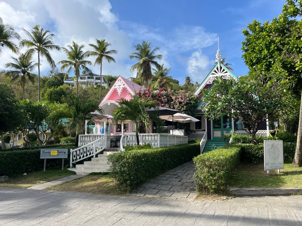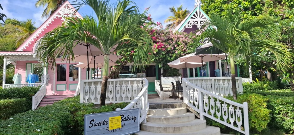 Der Ausflug an Land zwecks Einkauf hatte sich gelohnt, denn auf Mystique wurde wirklich auf das Ortsbild geachtet. Die Häuser und Gärten waren liebevoll gestaltet, es war sauber und die kleine Wege zwischen den Gebäuden entzückten uns genauso, wie die Landschildkröten, die man an allen Ecken hier finden konnte. Weniger entzückend waren die Preise im Supermarkt, denn die schienen dem hier immer wieder wohnenden Promipublikum angepasst. Wir hatten auf unserer Reise noch nie so wenig für so viel Geld bekommen. Andererseits hatten wir auch noch nie so ein schönes Dinghy Dock gesehen. Meist machte man das Dinghy an einer mehr oder weniger verfallenen Pier fest, doch hier war dieses aus gutem Holz gezimmert und in perfektem Zustand. Es waren sogar Bretter an der Wasserlinie angebracht, damit das Dinghy nicht unter die Pier treiben konnte, was bei steigen Wasser oft Schäden an dem Boot verursachte.