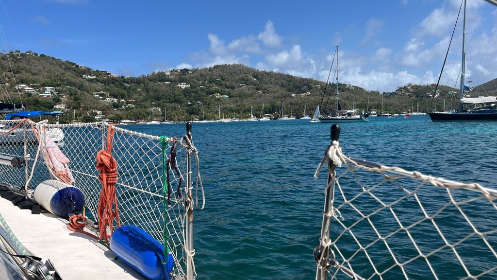 Union Island ist jene Insel, welche vom Hurrikane Beryll im Juni 2024 mit am härtesten erwischt wurde. So waren wir auch darauf gefasst, noch Spuren der Verwüstung vorzufinden, doch das Ausmaß, immerhin fast ein Jahr danach“ überraschte uns dann doch sehr. Der Wiederaufbau ist zwar im Gange, doch war Clifton Harbor, dort wo wir an einer Boje lagen, immer noch schwer gezeichnet. Teilweise gab es auf der Insel noch kein fließendes Wasser, täglich sahen wir Pickups mit Wassercontainern aus der Fähre rollen. Manche Einwohner, welche durch den Sturm ihre Häuser verloren hatten, lebten immer noch in Zelten nahe dem Strand. Was mag wohl in diesen Menschen vorgehen, angesichts der Tatsache, dass die nächste Hurrikane Saision in wenigen Wochen beginnen würde?