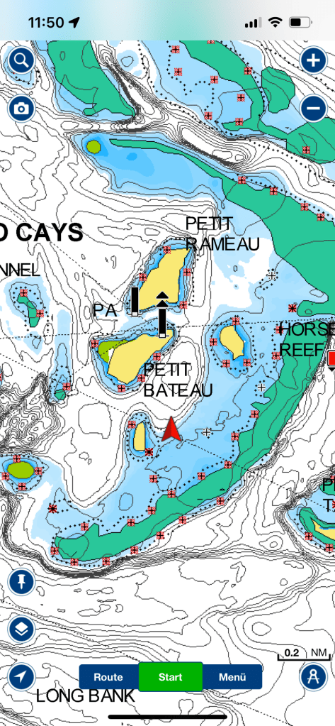 Ausserhalb des Hufeisenriffs war eine kleine Insel gelegen, an der ein Teil des Films „Fluch der Karibik“ gedreht wurde. Es war eben jene Szene an der Miss Swan den Rumvorrat von Captain Jack Sparrow verbrannte. Obwohl wir darauf verzichteten, die Insel zu besuchen, denn es wäre ein großer Umweg gewesen und wir hätten einen möglicherweise unsicheren Ankerplatz nutzen müssen, war es faszinierend, diesem Platz nahe zu sein. Diese Faszination wurde dadurch verstärkt, dass eine Superyacht hinter uns den Anker fallen ließ. Dies war nicht irgend eine beliebige Superyacht, sondern ein Drehort der Reality Doku „Below Deck“. In dieser Reality Doku wird das Leben von Yachties und deren exclusiven Gästen gezeigt und erfreut sich auch bei uns großer Beliebtheit. Tastsächlich beobachteten wir, neugierig, wie wir waren, mit dem Fernglas, wie sich Gäste, Crew und Filmteams auf der naheliegenden, kleinen Insel einfanden und ein Insel Picknick veranstalteten. Sehr Cool. Wir freuen uns schon, wenn die Staffel ausgestrahlt wird, denn vielleicht ist auch die Inspiration für einen Sekundenbruchteil zu sehen.