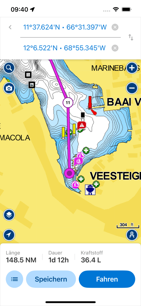 In aller Frühe des folgenden Tages hoben wir das Grundeisen und setzten uns in Richtung Südosten in Bewegung. Schließlich wollten wir, brav wie wir waren, bei den lokalen Behörden ein- und sofort wieder ausklarieren. Doch die Umstände machten uns hier einen gehörigen Strich durch die Rechnung. Nicht nur das die Coastguard auch an diesem Tag nicht erreichbar war, sondern Gegenwind und Gegenströmung verhinderten unser Vorhaben. Wir bewegten uns trotz Marschfahrt nur mit 1,5 Knoten auf das Ziel zu, so hätten wir 5 Stunden dorthin gebraucht. Also sind wir ohne Formalitäten von Dannen gezogen, was auch soweit ok war, hatten wir doch keinen Fuss auf venezuelanisches Hoheitsgebiet gesetzt. Obwohl das Rigg wieder vollständig funktionsfähig war, ließen wir es gemütlich angehen, eher sogar sehr vorsichtig, wollten wir doch nun Curacao ohne weitere Zwischenfälle erreichen. Mit kleinen Segeln, ließen wir uns von Wind und einer erfreulich starken Strömung vorwärts treiben.