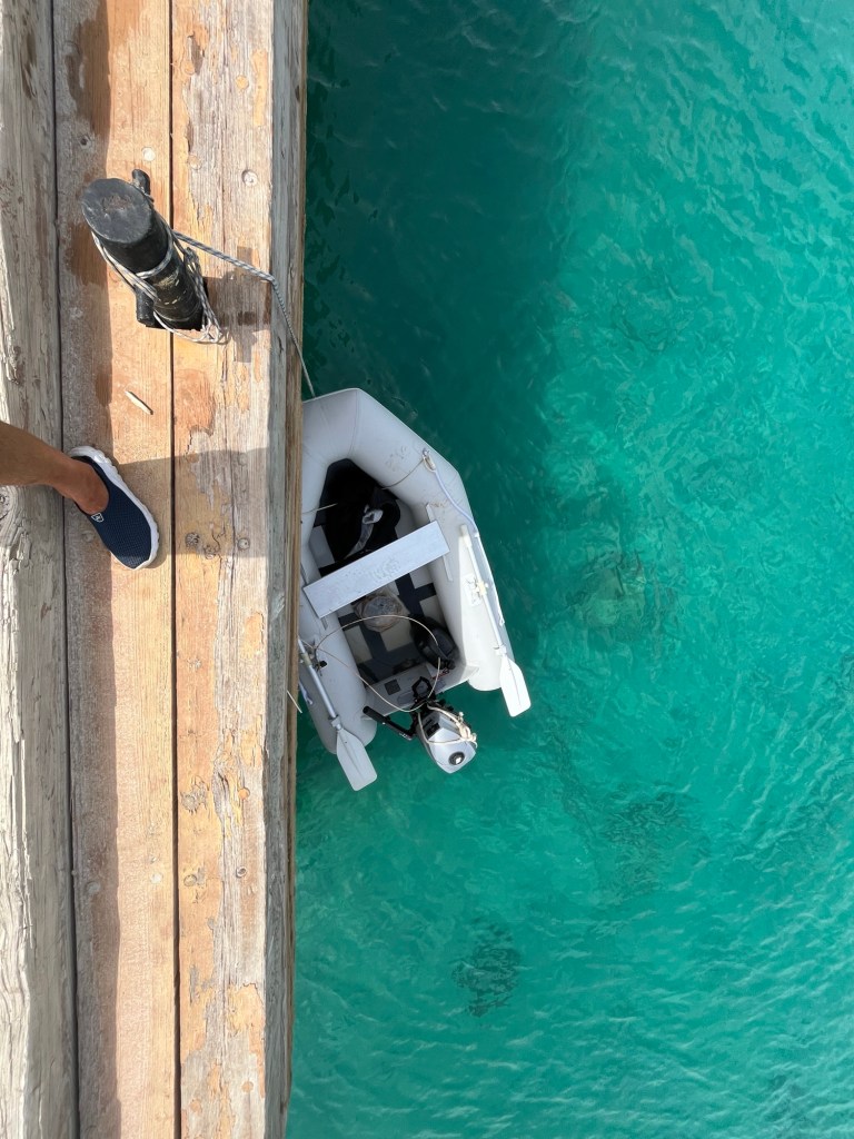 Am nächsten Morgen wurde ich ob des nun vollständig einsatzbereiten Schlauchbootes von Manuela in die Stadt entsannt, um Ingredienzien fürs Frühstück sowie anderwertige, unverzichtbare Dinge zu besorgen und natürlich den Müll an Land zu bringen. Der Wind kam von hinten, die Wellen waren moderat und so knatterte ich gemächlich in die Stadt. Die Einkäufe waren schnell erledigt, das Dinghy bestiegen und mit einem Riss lief der Aussenborder erwartungsgemäß. War das Wasser im Hafen noch ruhig und glatt, sollte sich dies nach Umrundung der Mole völlig ändern, denn nun ging es gegen den auffrischenden Wind, welcher auch schon eine gewisse Welle aufgebaut hatte. Zusammengefasst: Die Überfahrt war nass, sehr nass. Manu filmte des Schauspiel meiner Bootsfahrt, ein kleines auf den Wellen tanzendes Schlauchboot mit einem für das kleine Boot skurril großen Fahrer, der von der überkommenden Gischt im Minutentakt geduscht wurde. Als Reel, mit der Musik von Bud Spencers „Banana Joe“ hinterlegt, fand es auf Facebook und Instagram rege Aufmerksamkeit. Ein amerikanischer Follower fragte in den Kommentaren bezugnehmende auf die das Größenverhältnis Gerhard vs. Dinghy: „Is this a Pooltoy?????“