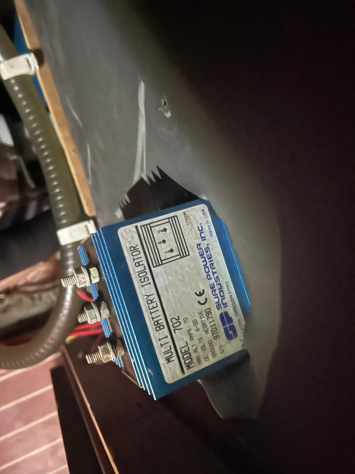 Die Lichtmaschine lädt im Motorlauf normalerweise sowohl die Starter- als auch die Verbaucherbatterie. Der Strom wird dabei über eine sogenannte Diodenschaltung verteilt. Dioden sind elektronische Bauelemente, welche den Strom nur in eine Richtung durchlassen, so ähnlich wie ein Rückschlagventil im Wasserkreislauf. Dies hat den Zweck, dass eine nicht voll geladenen Verbraucherbatterie nicht die Möglichkeit bekommt, Energie aus der meistes vollen Starterbatterie zu beziehen und umgekehrt. Nun war in unserem Fall dieses Diodenbauteil in Richtung der Verbraucherbatterie defekt und ließ gar keinen Strom mehr durch. Die Verbraucherbatteriebank wurde gar nicht mehr geladen.