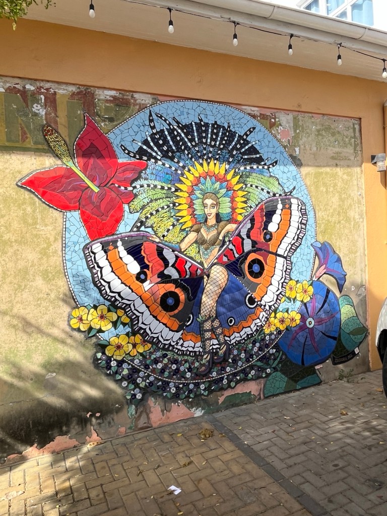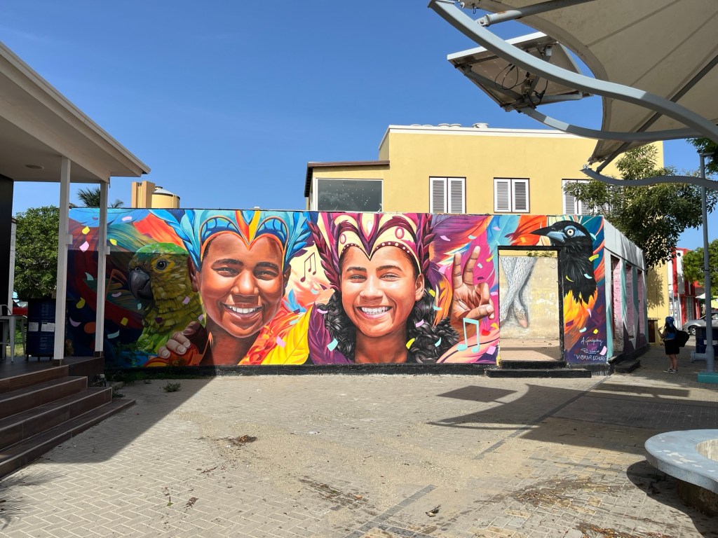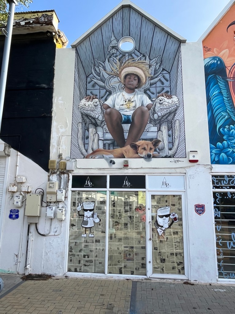 Verena kam eines morgens mit der Frage auf uns zu, ob wir nicht mit ihnen Oranjestad erkunden möchten. Wenig später brausten wir in ihrem Dinghy in die Marina und bestiegen einen Bus, mit dem wir uns in den südöstlichen Teil der Stadt begaben. Dort war das Viertel der Künstler gelegen und die schon vertrauten Wandbemalungen im öffentlichen Raum, wie wir sie schon auf Guadeloupe und Curacao bewundern konnten, luden uns auch hier wieder zum Sightseeing ein. Wir steuerten herum, erfreuten uns an den schönen Graffities, ja den heimischen Sprayern sei ans Herz gelegt, man kann auch wunderschön sprayen und suchten schließlich eine Gaststätte auf. Denn Kultur macht durstig. Diese Bar/Restaurant Kombination wäre auch als die Rumpelkammer eines Museums durchgegangen, hatten doch die Generationen an Wirten hier einen ausgeprägte Sammelleidenschaft. Allerlei Maritimer Krimskrams bildete die Dekoration des Gastraumes, wo bei man auch hätte meinen können, die Tische und Stühle würden einfach zwischen das Gerümpel platziert. Dennoch war es auf einen besondere Art gemütlich, trug es ja die die persönliche, Handschrift der Eigentümer und war nicht irgend so ein steriler Großstadtladen. Das Bier floss in unsere Kehlen und wir hatten eine tolle Zeit. Vielleicht passten wir auch gut in dieses Sammelsurium der maritimen Kuriositäten.