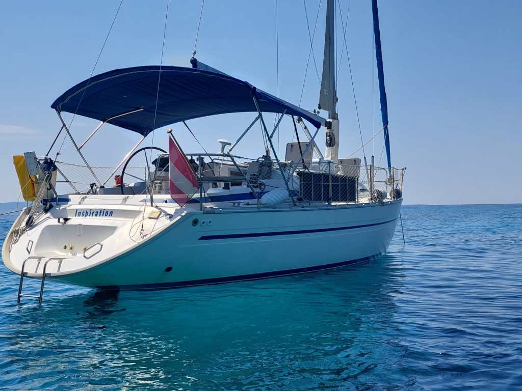 Unsere Inspiration ist eine Bavaria 35 Exclusive, Bj 1997. Sie ist 10,65m lang und 3,65m breit. Die Zusatzbezichnung Exclusive steht dafür, dass es eine Eignerversion ist. Anstatt wie damals üblich, 3 Doppelkabinen zu verbauen, hat unsere Yacht eine relativ großzügige Nasszelle mit Stauraum im Heck, steuerbords.